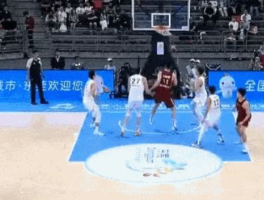 周琦制造犯规时又被击中了面部,周琦倒地翻滚了一圈。